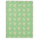Adorable grenouille verte kawaii avec un léger rougissement sur ses joues dans un cercle jaune sur un arrière - plan vert qui a un tout petit motif de pois blanc dessus. Ci-dessus est un modèle pour ajouter votre nom ou autre message personnel. Le dos a un motif de beaucoup de la même grenouille avec des feuilles verts.