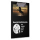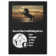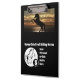 Une reproduction de jument se trouve dans le coin inférieur gauche, dans un style art en ligne. Au-dessus du cheval se trouve une photo d'une silhouette de cheval au premier plan d'un joli coucher de soleil, l'image peut facilement être changée en votre propre photo, selfie, ou image. Entre les deux chevaux est un champ de texte customisé qui se lit comme "Horse Club Trail Riding", réaménagé pour répondre à vos besoins; club, travail, entreprise familiale, ou endroit où les chevaux sont accueillis. Dans la partie inférieure gauche, vous trouverez des champs de texte pour votre devise personnelle ou de club. Ci-dessous les sabots est une initiale pour un monogramme personnel.