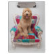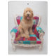 Un Goldendoodle heureux se reposant satisfait sur une chaise colorée et modelée. Ce chiot hirsute mignon semble n'être plus grand que la chaise mais jamais trop grand pour se tenir dans des vos bras. Avec sa langue collant, faisant face à l'appareil-photo en cette photo, il ferait le compagnon parfait. Découvrez des chiots plus mignons de sorts ici sur Zazzle avec des images de Getty.