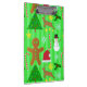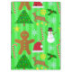 Ce joli dessin de vacances a un collage de dessins humoristiques de Noël drôles et festifs. Le design comprend un sapin de Noël, un renne, un bonhomme de neige, un homme en pain d'épices, des sucres de canne, un faux-pied, un chapeau de Père Noël, des flocons de neige et des étoiles. L'arrière - plan est rayé, dans deux tons vert clair. C'est un joli et unique design xmas pour la saison des fêtes.