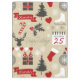 Joyeux Joyeux Noël design symboles - flocons de neige, cerf, calendrier, arbre de Noël, cadeau de Noël, patinage, coeurs, ornement de Noël, bas de Noël, ruban - décoration sur arrière - plan gris