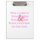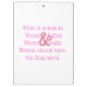 Dans le texte rose il est écrit : "Quand il s'agit des droits des femmes et de la santé des femmes, les femmes devraient avoir le dernier mot." Le signe "et" est une couleur rouge, est placé dans l'arrière - plan du texte rose, et est agrandi pour couvrir à la fois les "droits" et la "santé" du texte rose.