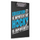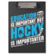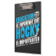 Drôle porte - bloc à thème hockey avec texte bleu et blanc sur un arrière - plan noir lit L'éducation est importante Mais le hockey est important!