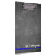 Ce porte - bloc modifiable est muni d'un arrière - plan de tableau noir sur les deux côtés et d'une fine ligne bleue sur l'avant avec un champ modifiable pour le nom et le numéro d'insigne d'un officier ou d'un détective. Vous pouvez modifier les informations ainsi que la taille, le style et la couleur de la police. C'est parfait pour quelqu'un dans l'application de la loi mais aussi pour les éducateurs et les étudiants. La couleur de la bande peut aussi être changée. Profitez de votre nouveau Porte - bloc d'application de la loi de la police de la Ligne Bleue Mince Modifiable!