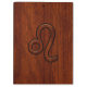 Un signe en zodiaque Leo sur un acajou comme un arrière - plan imprimé. Un design de style riche classique pour une idée cadeau d'anniversaire sur mesure. Utilisez le lien "AMessage" pour nous contacter avec vos demandes de design spécial ou pour obtenir de l'aide pour vos besoins de personnalisation.