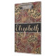 Un motif de Paisley avec le motif de peau de tache de léopard avec une bannière en cuir noire entouré par des fausses pierres de diamant (faux) ces vous pouvez customiser et personnaliser. Changez juste Elizabeth nommé en n'importe quel nom que vous choisissez. Modelez les couleurs s'étendent dans noir, brun, marron, rouge.