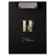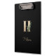 Un élégant porte - bloc noir est doté d'un monogramme botanique en or au centre.