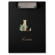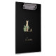 Un élégant porte - bloc noir est doté d'un monogramme botanique en or au centre.