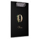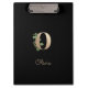 Un élégant porte - bloc noir est doté d'un monogramme botanique en or au centre.