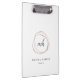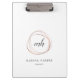 Le porte - bloc chic présente vos initiales ou votre monogramme dans un script de calligraphie à l'intérieur d'un élément de cercle abstrait de feuille d'or faux rose sur un arrière - plan blanc immaculé. Personnalisez avec deux lignes de texte personnalisé sous. Le design se répète à l'envers.