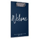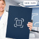 Porte - bloc minimaliste moderne en bleu foncé et blanc avec nom d'entreprise personnalisé. Votre logo peut être placé sur le dos.