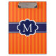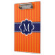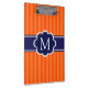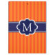 Les rayures oranges modernes et élégantes avec le cadre de bannière de bleu marine conçoivent dans le forn moyen votre initiale personnalisée de monogramme.
