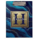 Marine Blue Agate Marbre Gold Nom et Porte - bloc Monogramme