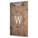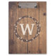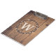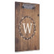 Monogramme design pour Noël avec couronne et décoration de neige sur arrière - plan en bois rustique