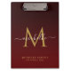 Personalized Modern Elegant Initial Name Template Red Black Gold Script Calligraphy Name Monogram Clipboard.