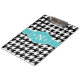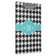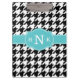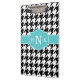 Motif en pied de noir et blanc avec un modèle monogramme de style Quatrefoil bleu marine. Une idée cadeau moderne et tendance pour une fille de sororité preppy et élégante.