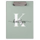 Ce porte - bloc simple et élégant de sauge vert 12,5 x 9 avec votre prénom dans une police de script tendance en noir et votre première initiale dans une police de casquette moderne en blanc est parfait pour vous. C'est design, tendance et pourtant très classique. Il sera utile dans tant de situations. Parfait pour le travail, la maison, l'école.