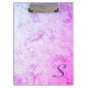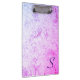 Le design comporte un arrière - plan marbré rose et violet à l'avant et à l'arrière. Avant présente l'initiale que vous fournissez dans une police violette amusante.