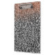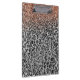 Parties scintillant dorée imitation Rose personnalisée avec un effet brillant. Le dessus a un effet confetti avec une toile de fond en taches de léopard gris monochrome. Customisez cette police de script sophistiquée avec votre nom, et monogramme, ou initial, ou texte pour un design chic de style girly. Avec des diamants de faux rhinocéros.