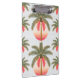 L'image montre un motif stylisé de palmiers dont les feuilles sont garnies de rose et de vert lumineux. En arrière-plan, un soleil étagé et chaud rayonne dans les huiles d'orange et de rose, ce qui donne une atmosphère tropicale détendue. Le tracé clair et les couleurs douces donnent un sentiment de tranquillité et de facilité estivale.
