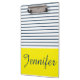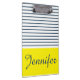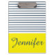 Motif moderne rayé blanc, bleu et jaune avec nom personnalisé