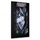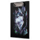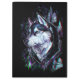A stunning digital painting of a wolf’s face, rendered with vibrant neon blues, purples, and pinks against a dark, abstract forest backdrop. The glowing, high-contrast style gives the wolf an intense, almost supernatural presence — perfect for edgy wall art, album covers, or apparel that blends nature with cyberpunk energy.