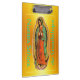 Nuestra Señora de Guadalupe Portapapeles ... Nuestra Señora de Guadalupe ... En diciembre de 1531 la Virgen María se apareció en una colina a un azteca Juan Diego pidiéndole que le construcyera una capilla allí. Llevaba una prenda de color rosa con malades ños de plantas para su asociación mundana y una túnica azul turquesa con estrellas doradas para su asociación celestial. Cuando el arzobispo español exigió prueba de un milagro, ella proporcionó rosas españolas que el azteca Juan Diego llevó al arzobispo español en su manto o tilma ... cuando las rosas se derramaron por el suelo apareció la imagen de la Virgen María sobre el manto tilma. Esta imagen aún existe encerrada en el altar de la capilla construcida sobre el cerro en la Ciudad de México. Esta imagen es una de las imágenes devocionales más populares del mundo en la actualidad. Siempre se la muestra rodeada de luz deslumbrante ... así se le apareció a Juan Diego.