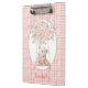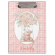 Un mignon ours en peluche sur une balançoire sur un arrière - plan en plaid rose. Personnalisez facilement le nom en quelques clics.