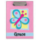 Porte-bloc Papillon bleu sur bandes rose et blanche
