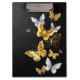 Or, bijoux et papillons blancs sur arrière - plan noir. Papillon d'or.