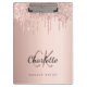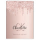 Fille et glamour. Un arrière - plan en or rose avec des gouttes de parties scintillant faux, la peinture goutte à goutte. Personnalisez et ajoutez un nom, des initiales monographiques et du texte/titre. Or rose foncé et lettres de couleur noire.