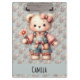 Porte-bloc Pastel Teddy Bear Holding Flower Wear Overalls