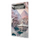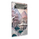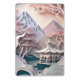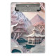 Un joli faux papier découpe paysage mini porte - bloc avec montagnes, pavillon et arbres.