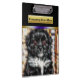 Un chien mignon vous regardant avec ses yeux rouge vif debout sur un rail le chiot un Pekingese noir et blanc puppy appelé peter