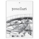 Dessin au crayon.Artiste de Zolotareva. Pencilart moderne et tendance, noir blanc monochrome. Il y a un beau pont au-dessus de l'étang.Vous pouvez ajouter nom ou texte personnalisé. Personnaliser ce modèle