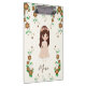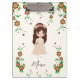 Petite fille avec des fleurs et une robe beige sur fond clair