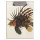 Illustration vintage de la vie marine aquatique d'eau salée avec un poisson lion dangereux. Pterois, également connu sous le nom de poisson lion, est un poisson venimeux avec des rayures et des taches rouges, blanches et noires, des nageoires pectorales voyantes et des rayons de nageoire épineux venimeux.