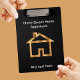 Le porte - bloc acrylique fait sur commande d'affaires a conçu pour un priseur d'immobiliers ou un service ou un n'importe qui d'évaluation dans le secteur immobilier. Inclut un or chic regardant le symbole de maison dessus et le texte que vous pouvez customiser des deux côtés du porte - bloc.