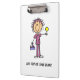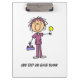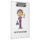 Un grand porte - bloc pour les infirmières, présente une infirmière brune dans un uniforme violet qui apparemment vient de dessiner le sang et offre une sucette!