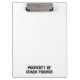 Personne ne peut s'enfuir avec le porte - bloc de cet entraîneur. Personnalisé avec le nom de l'entraîneur à l'avant et à l'arrière.
