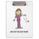 Un grand porte - bloc pour des infirmières, des caractéristiques une infirmière féminine d'une chevelure brune dans un uniforme pourpre avec le stéthoscope et un secteur que vous pouvez customiser ou laisser le blanc.