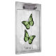 Rejoignez les notes et les rappels sur une surface sécurisée avec un Porte - bloc Floral aux papillons verts. Le design porte - bloc présente une paire de papillons vibrants reposant sur une vigne florale blanche contre un arrière - plan gris clair. Autres cadeaux disponibles avec ce design ainsi qu'une variété de couleurs.