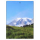 Une vue sur le Mont Rainier et les collines verdoyantes environnantes pendant une journée ensoleillée de printemps.