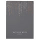Le porte - bloc gris chic comporte deux lignes de texte personnalisé en lettrage blanc classique, sur un arrière - plan gris moyen riche avec des fils verticaux de fils de ficelle rose doré en cascade du haut.