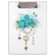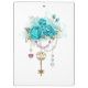 Clé d'or antique aux roses turquoise tendance décorée de feuilles d'or blanc et de perles rose et bleu. Couleur tendance. Rose turquoise. Blanc doré. Tiffany bleu.