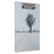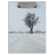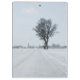 Snowy country road à Sweden on a cold winter day. Big tree next to the road and a little village à distance. Photographe.