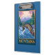 La scène de pêche de mouche - Montana - affiche de Vintage voyage a été créée en 2007. Cette image dépeint des scènes du Montana.