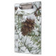 Un cône de pin, toujours sur l'arbre, recouvert de neige fraîchement tombée. Cette photo est parfaite pour l'hiver ou pour les espoirs d'un Noël blanc. Consultez notre magasin pour plus de dessins de pins enneigés. Cette image est également présentée comme le fond d'écran large "Snowy Pine Cone I" à www.mlewallpapers.com.