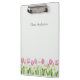 This elegant spring clipboard features soft pink tulips and white daffodils arranged in a classic garden border along the bottom. Set against a light, airy background and personalized with your name, it brings refined botanical charm to everyday organization.