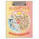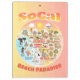 Un dessin spectaculaire de la Californie du Sud - mettant en vedette Los Angeles, Orange County, San Diego. Cette scène lumineuse et charmante a tout - un surfeur pend dix pendant qu'un couple joue dans l'eau, un orque saute, un couple de plage musclé à flex pour impressionner, des animaux de zoo attendent les touristes, un t-rex rugit un défi, le tout sous le soleil de Californie brillant au-dessus de tout.